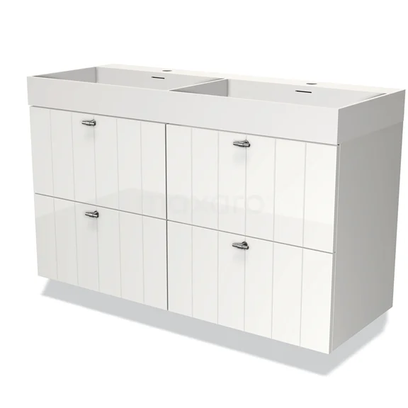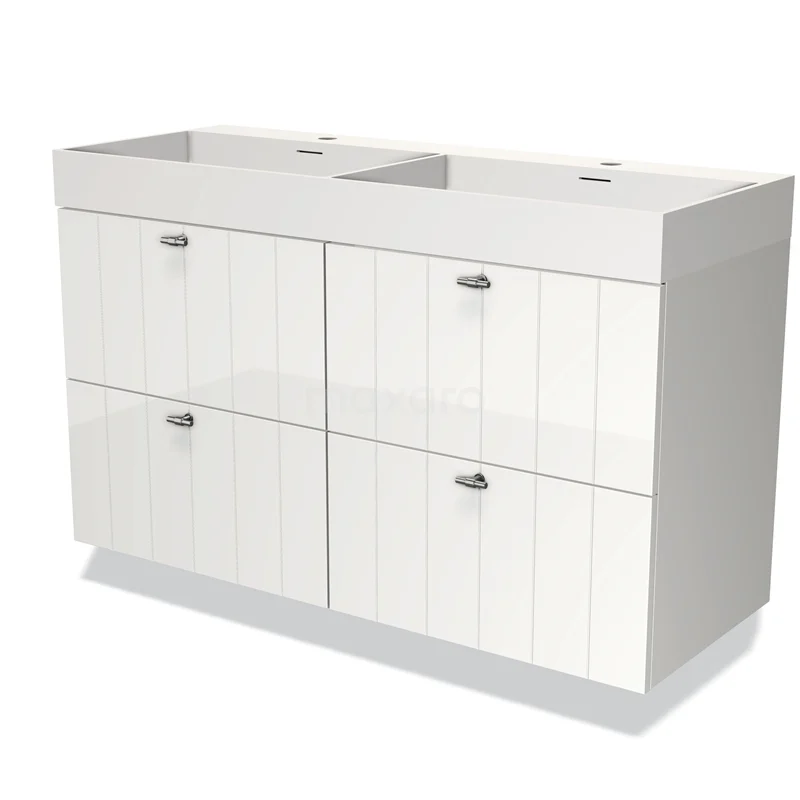Modulo Bathroom furniture with sink | 120 cm High-gloss white Slat front Solid surface 4 drawers