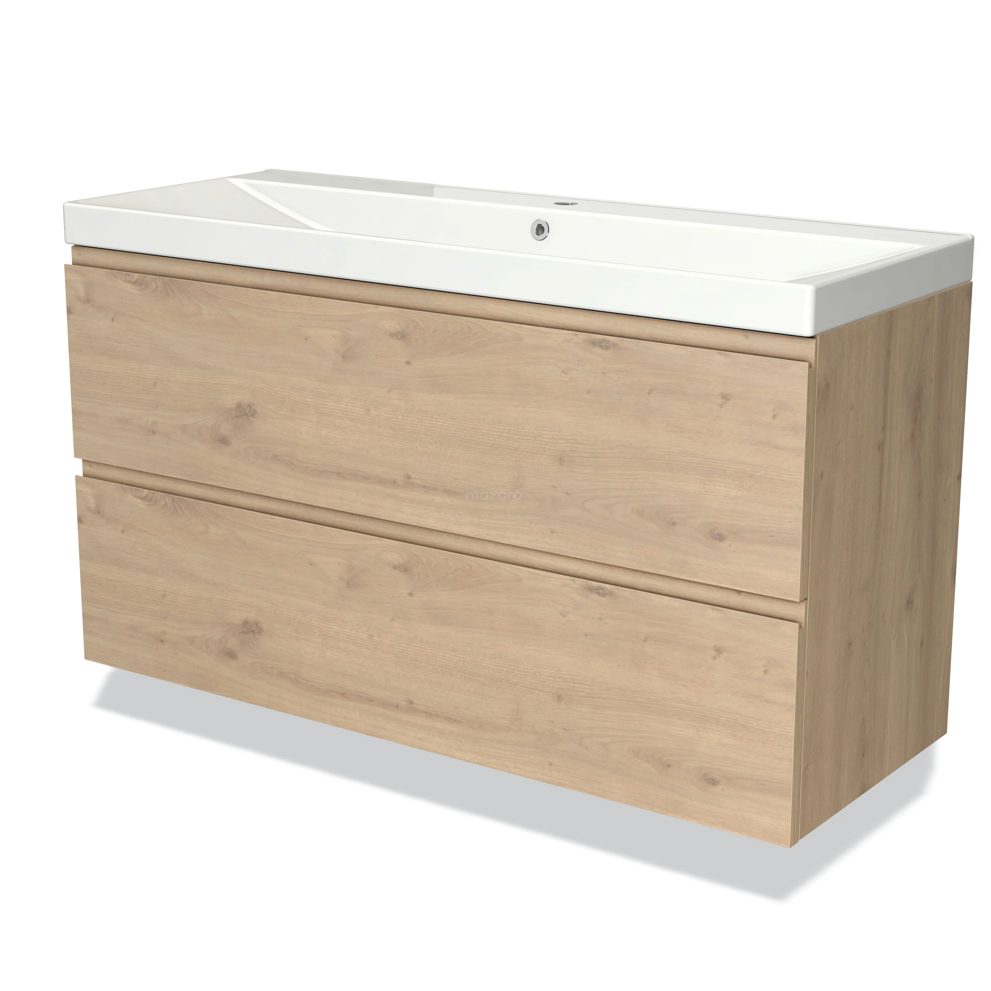 Modulo Bathroom furniture with sink | 120 cm Light brown oak Handle-less front Ceramic 2 Stacked drawers