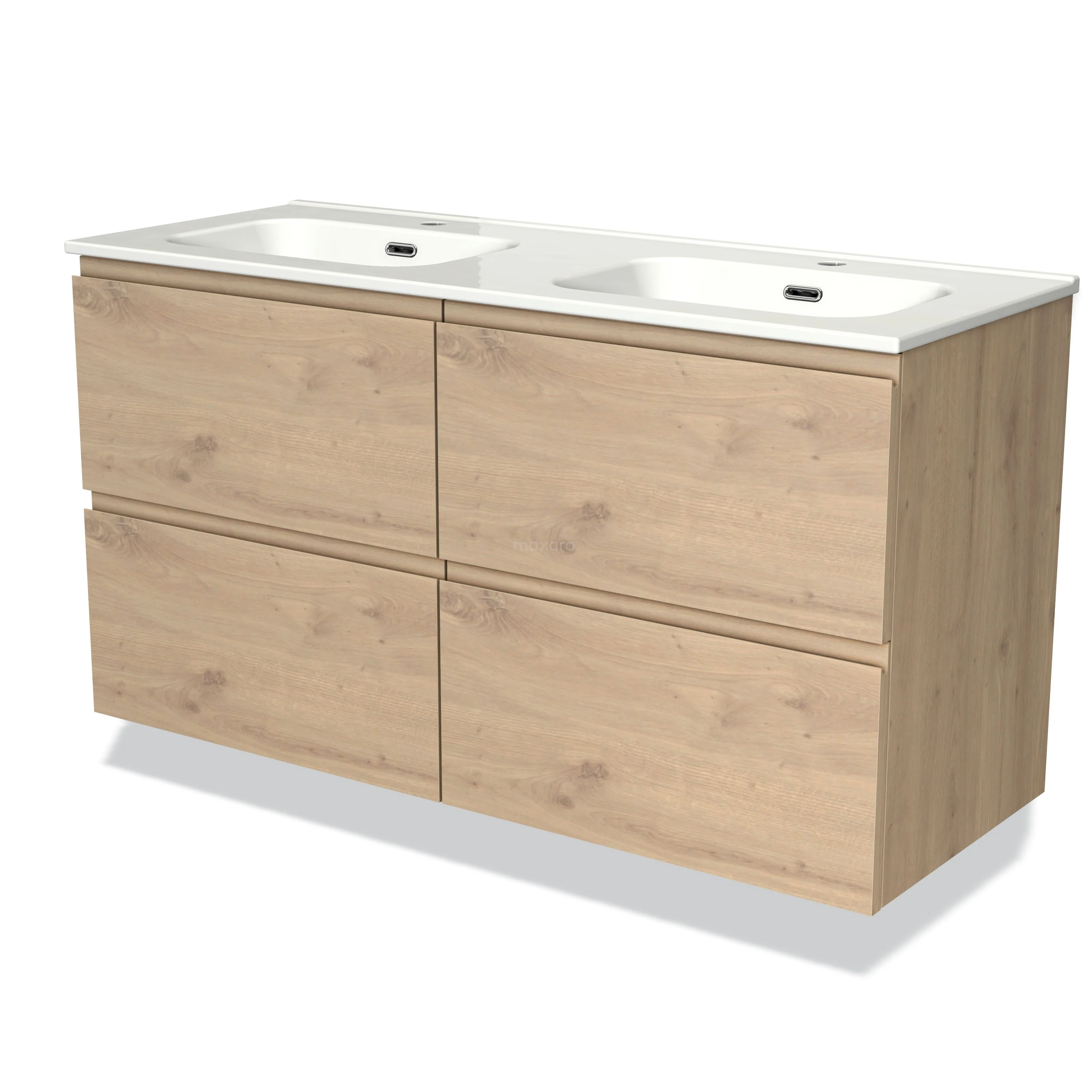Modulo Bathroom furniture with sink | 120 cm Light brown oak Handle-less front Ceramic 4 drawers