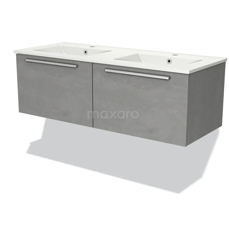 Modulo Bathroom furniture with sink | 120 cm Light grey concrete Flat front Ceramic 2 Side-by-side drawers