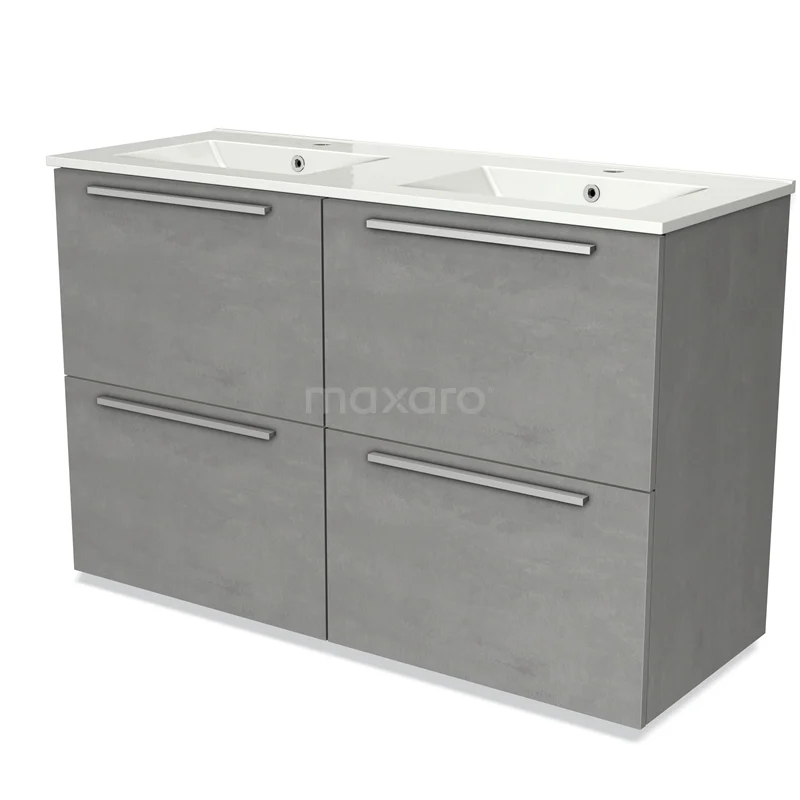 Modulo Bathroom furniture with sink | 120 cm Light grey concrete Flat front Ceramic 4 high drawers