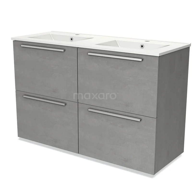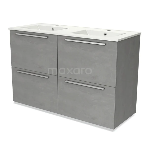 Modulo Bathroom furniture with sink | 120 cm Light grey concrete Flat front Ceramic 4 high drawers