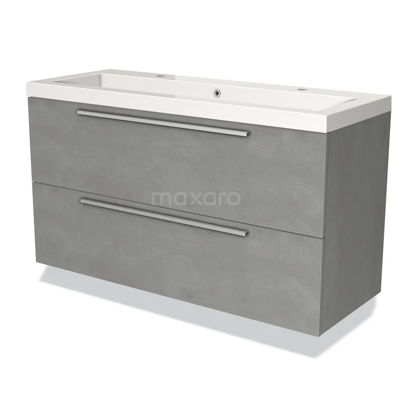 Modulo Bathroom furniture with sink | 120 cm Light grey concrete Flat front Mineral marble 2 Stacked drawers
