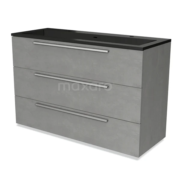 Modulo Bathroom furniture with sink | 120 cm Light grey concrete Flat front Quartz 3 drawers
