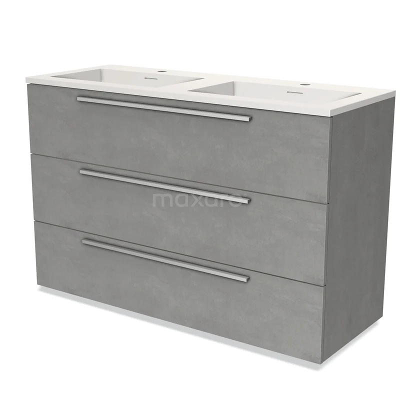 Modulo Bathroom furniture with sink | 120 cm Light grey concrete Flat front Solid surface 3 drawers
