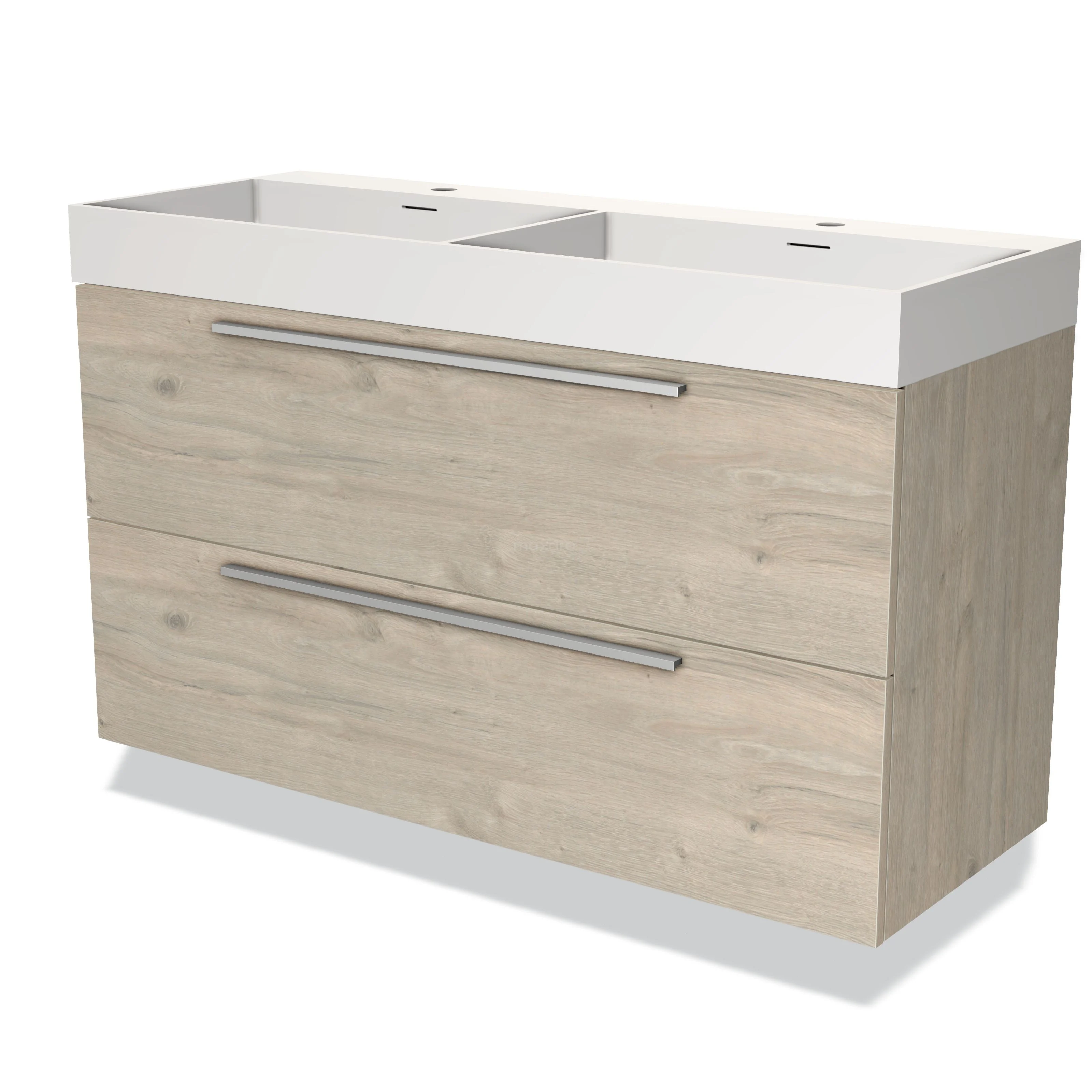 Modulo Bathroom furniture with sink | 120 cm Light grey oak Flat front Solid surface 2 Stacked drawers