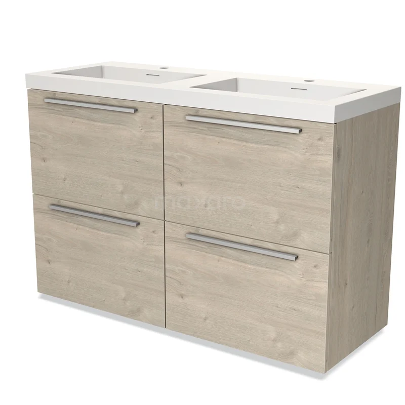 Modulo Bathroom furniture with sink | 120 cm Light grey oak Flat front Solid surface 4 high drawers