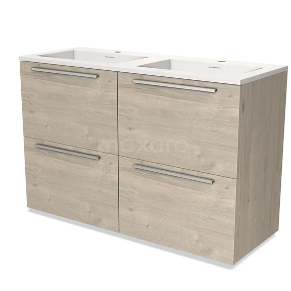 Modulo Bathroom furniture with sink | 120 cm Light grey oak Flat front Solid surface 4 high drawers