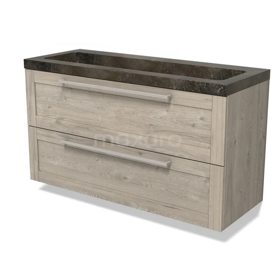 Modulo Bathroom furniture with sink | 120 cm Light grey oak Frame front Natural stone 2 Stacked drawers