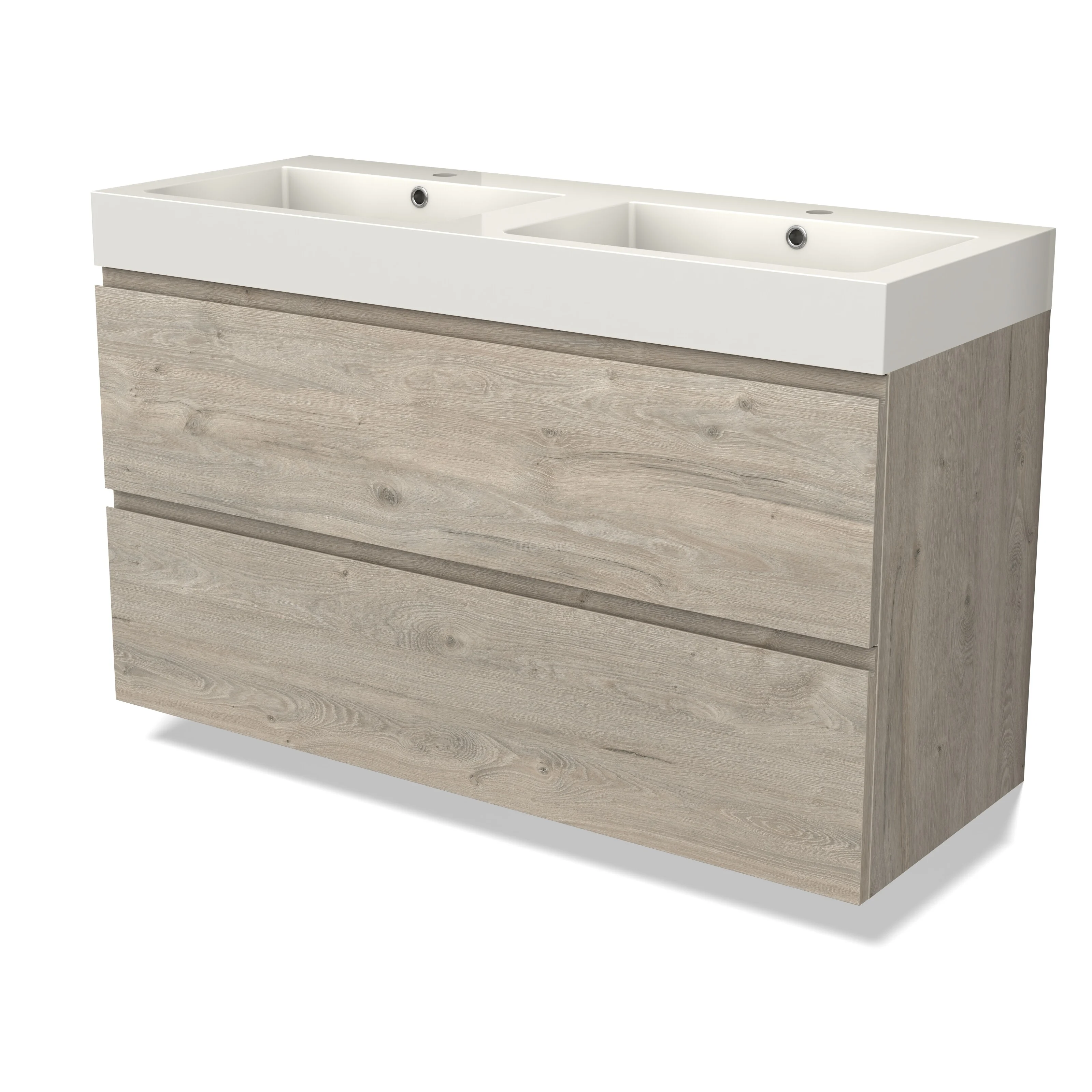 Modulo Bathroom furniture with sink | 120 cm Light grey oak Handle-less front Mineral marble 2 Stacked drawers
