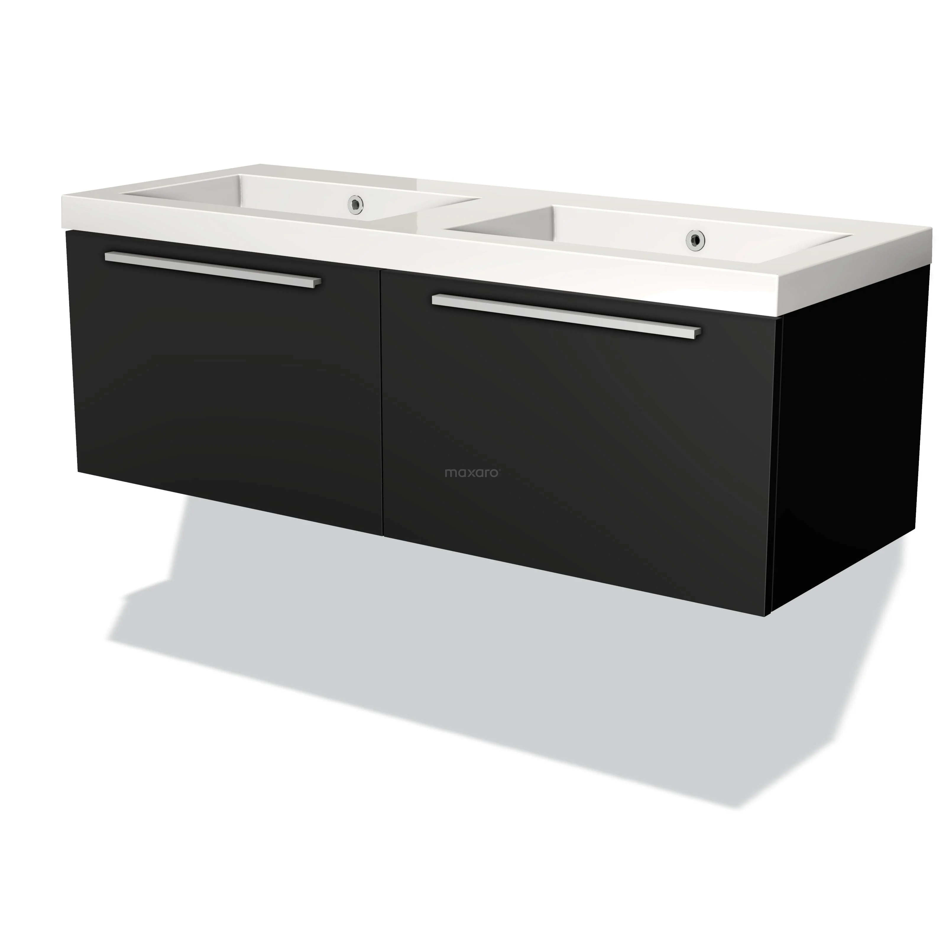 Modulo Bathroom furniture with sink | 120 cm Matte black Flat front Mineral marble 2 Side-by-side drawers