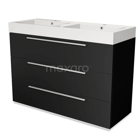 Modulo Bathroom furniture with sink | 120 cm Matte black Flat front Mineral marble 3 drawers