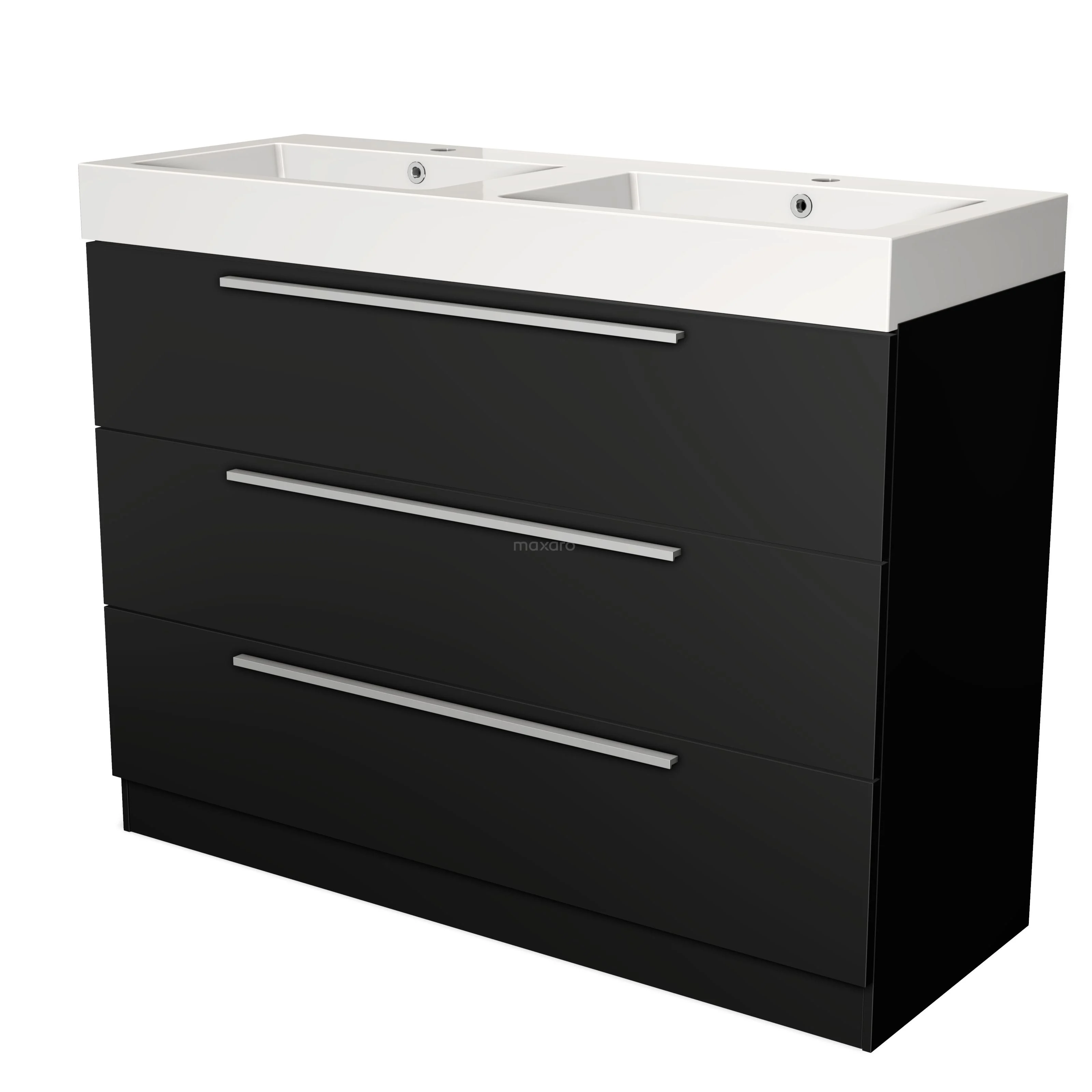 Bathroom unit complete A beautiful basin tap should not be missing from the bathroom unit. At Maxaro, you will discover taps in stainless steel, chrome, copper, gold, black metal and black chrome, among others. So you will always find a model to match the unit and your bathroom. For even more storage space and to complete the room, choose a matching bathroom cabinet.