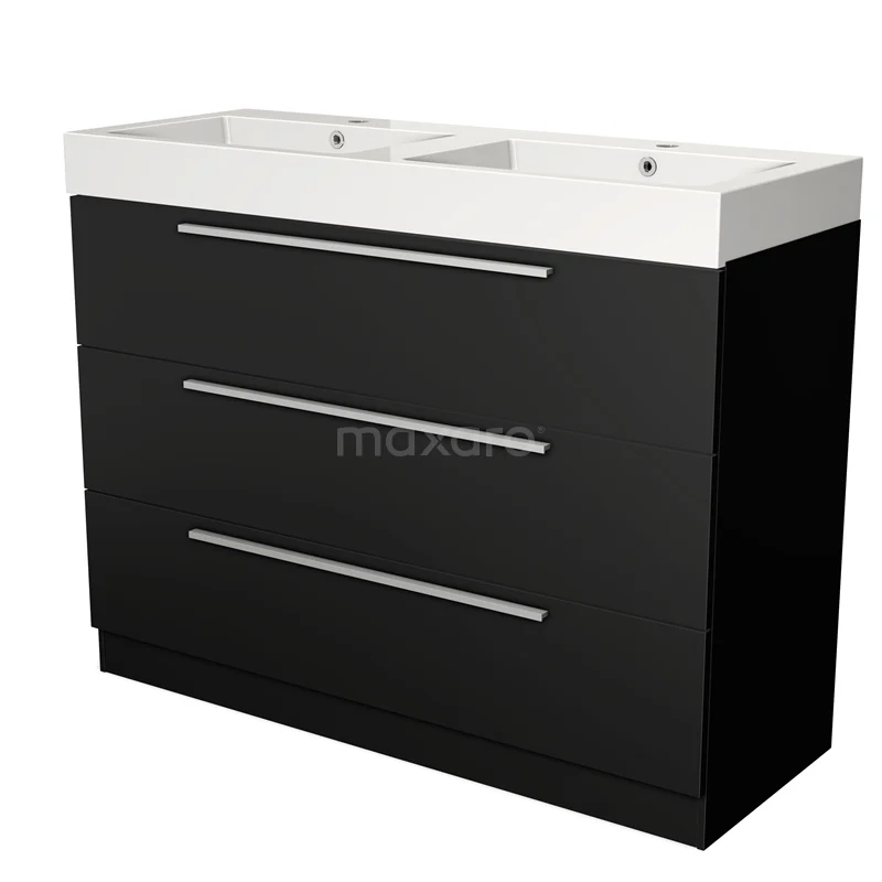 Modulo Bathroom furniture with sink | 120 cm Matte black Flat front Mineral marble 3 standing drawers