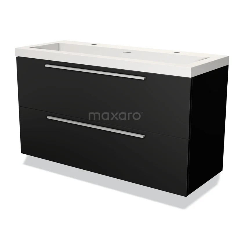 Modulo Bathroom furniture with sink | 120 cm Matte black Flat front Solid surface 2 Stacked drawers
