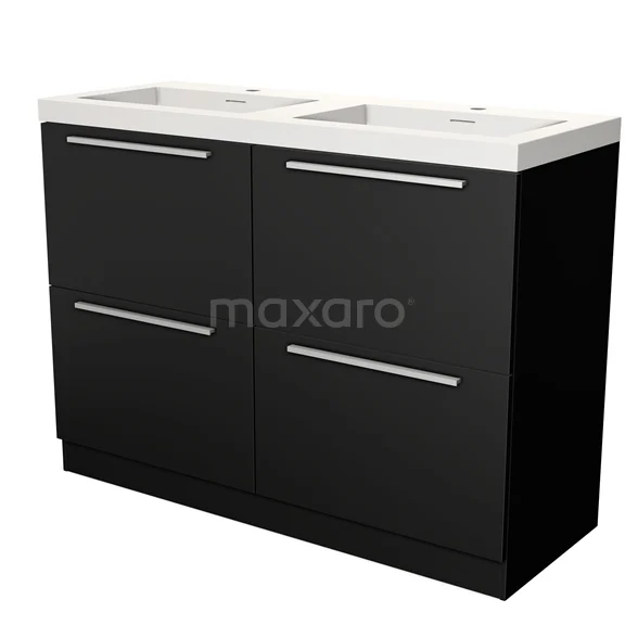 Modulo Bathroom furniture with sink | 120 cm Matte black Flat front Solid surface 4 standing high drawers