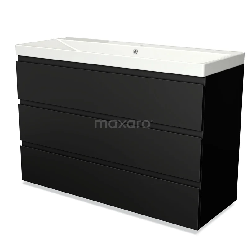 Modulo Bathroom furniture with sink | 120 cm Matte black Handle-less front Ceramic 3 drawers