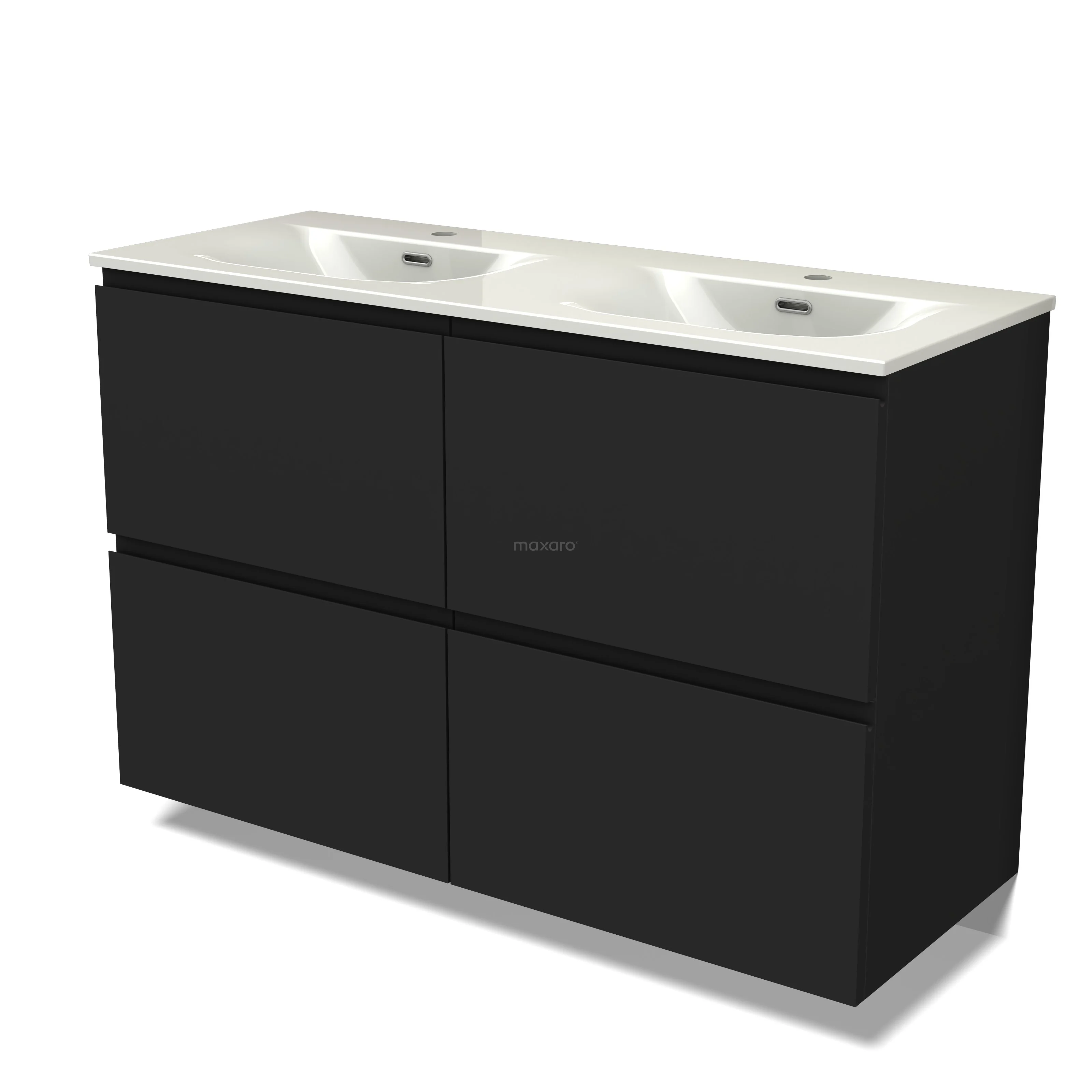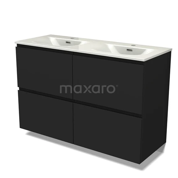 Modulo Bathroom furniture with sink | 120 cm Matte black Handle-less front Ceramic 4 high drawers