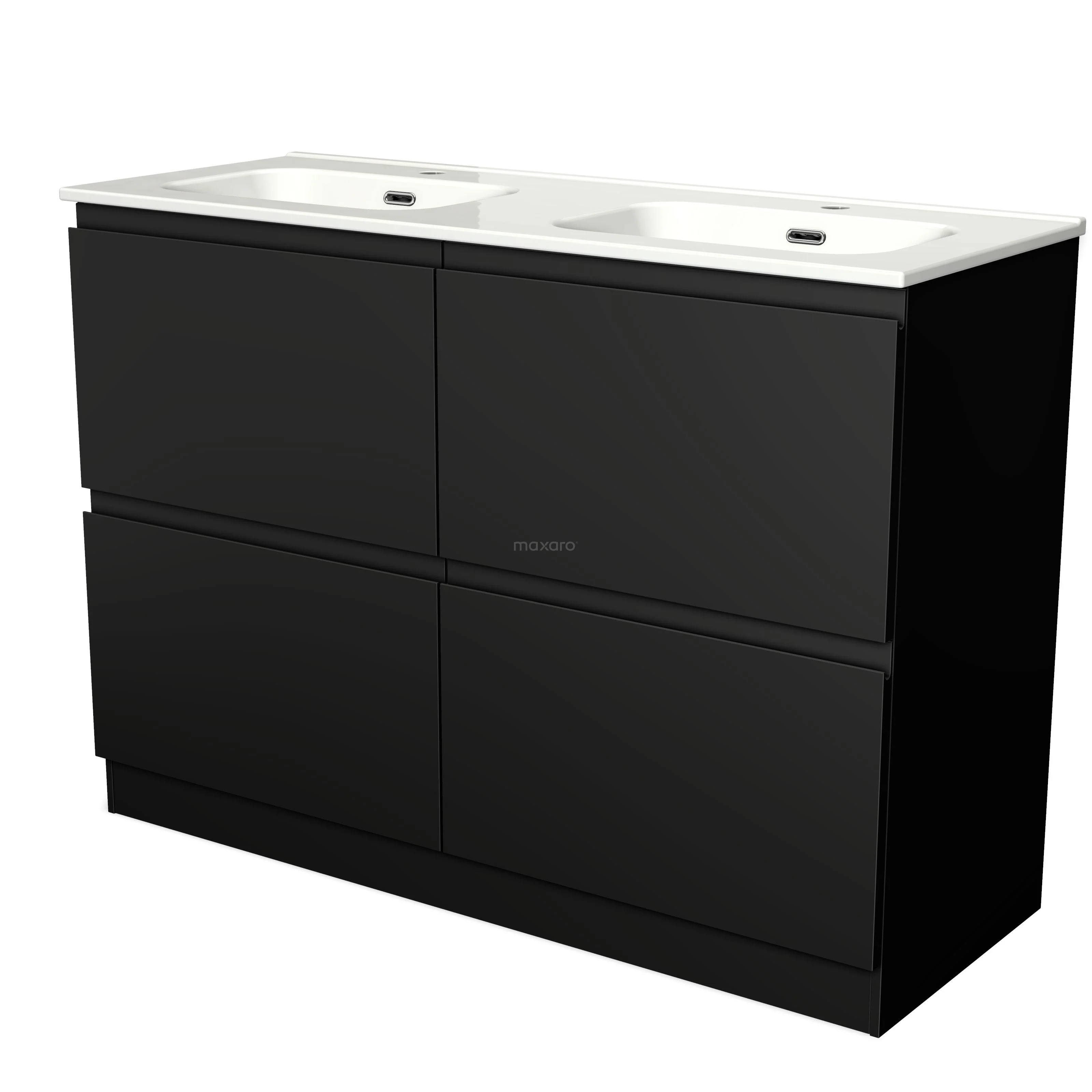 Modulo Bathroom furniture with sink | 120 cm Matte black Handle-less front Ceramic 4 standing high drawers