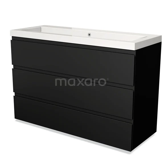 Modulo Bathroom furniture with sink | 120 cm Matte black Handle-less front Mineral marble 3 drawers