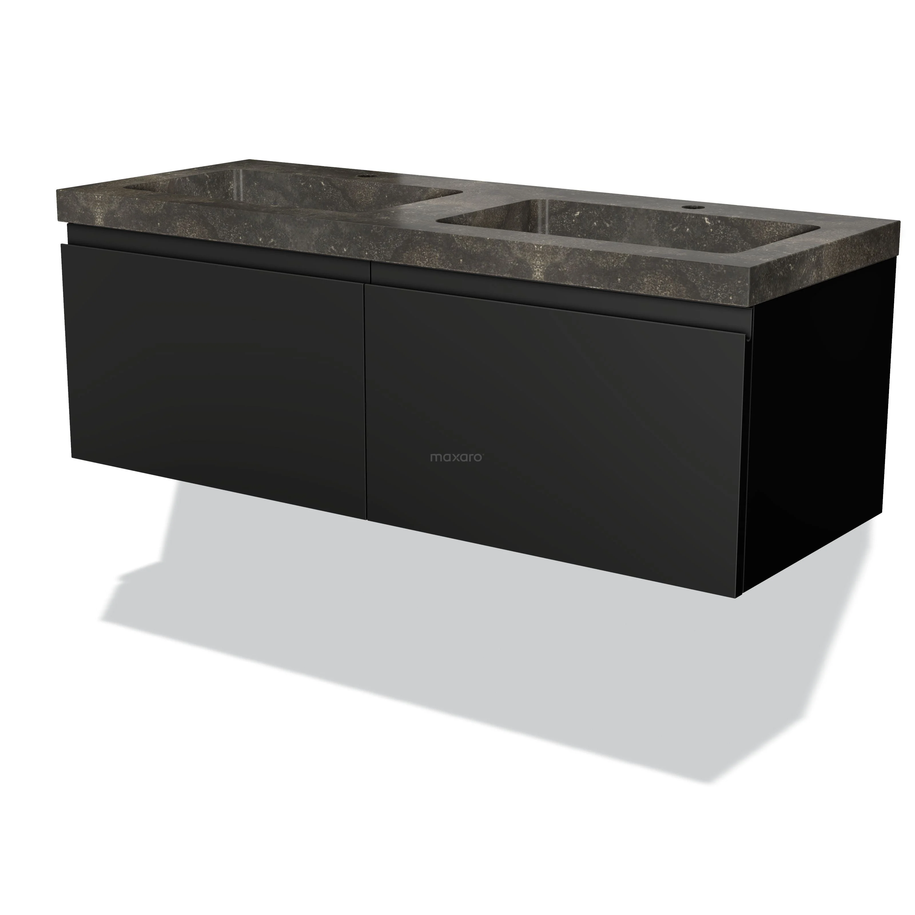 Modulo Bathroom furniture with sink | 120 cm Matte black Handle-less front Natural stone 2 Side-by-side drawers