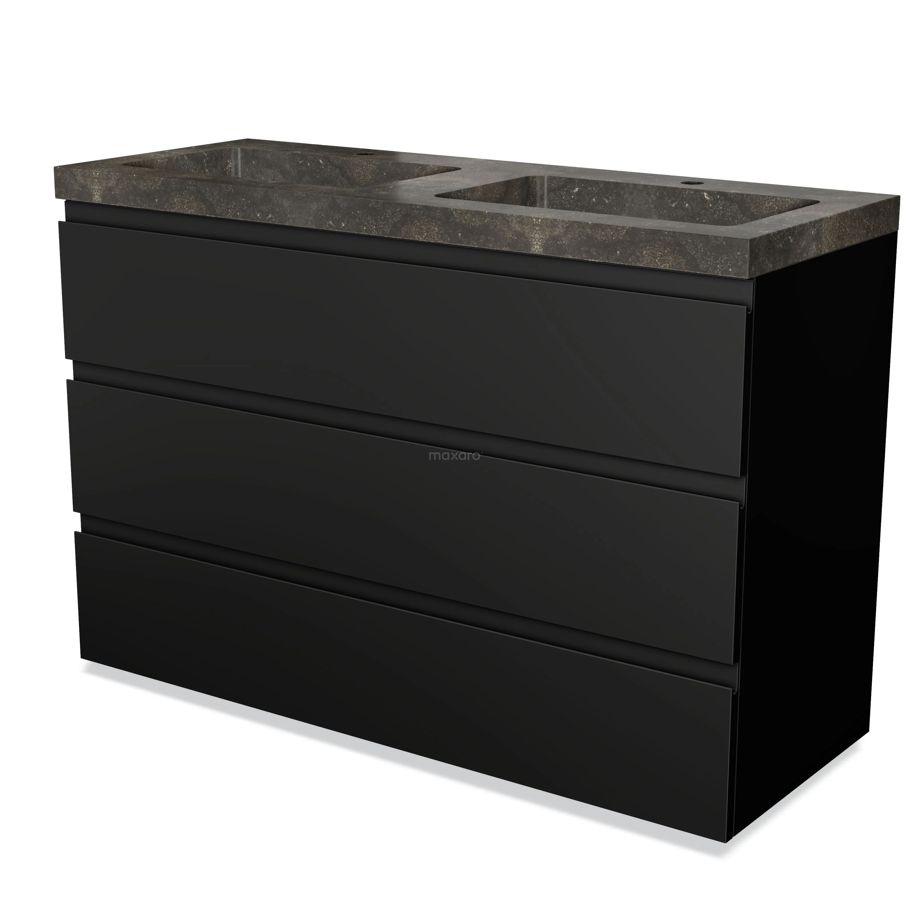 Modulo Bathroom furniture with sink | 120 cm Matte black Handle-less front Natural stone 3 drawers