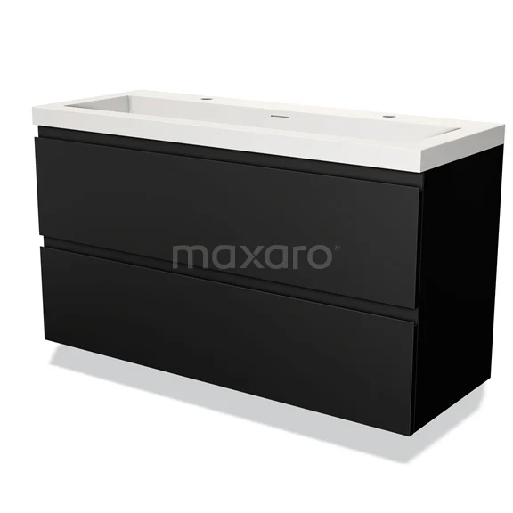 Modulo Bathroom furniture with sink | 120 cm Matte black Handle-less front Solid surface 2 Stacked drawers
