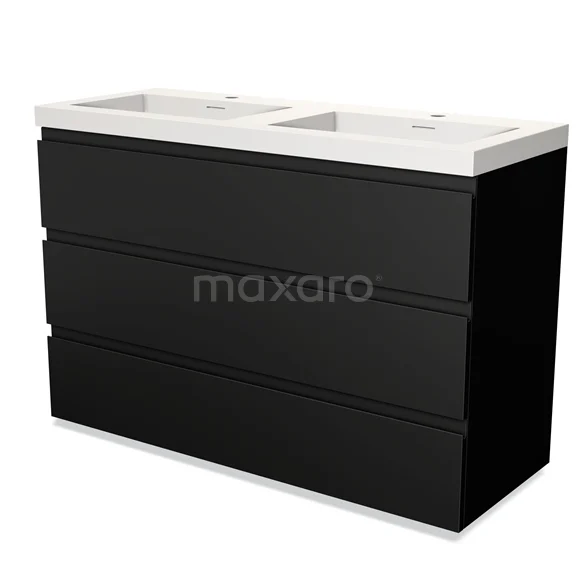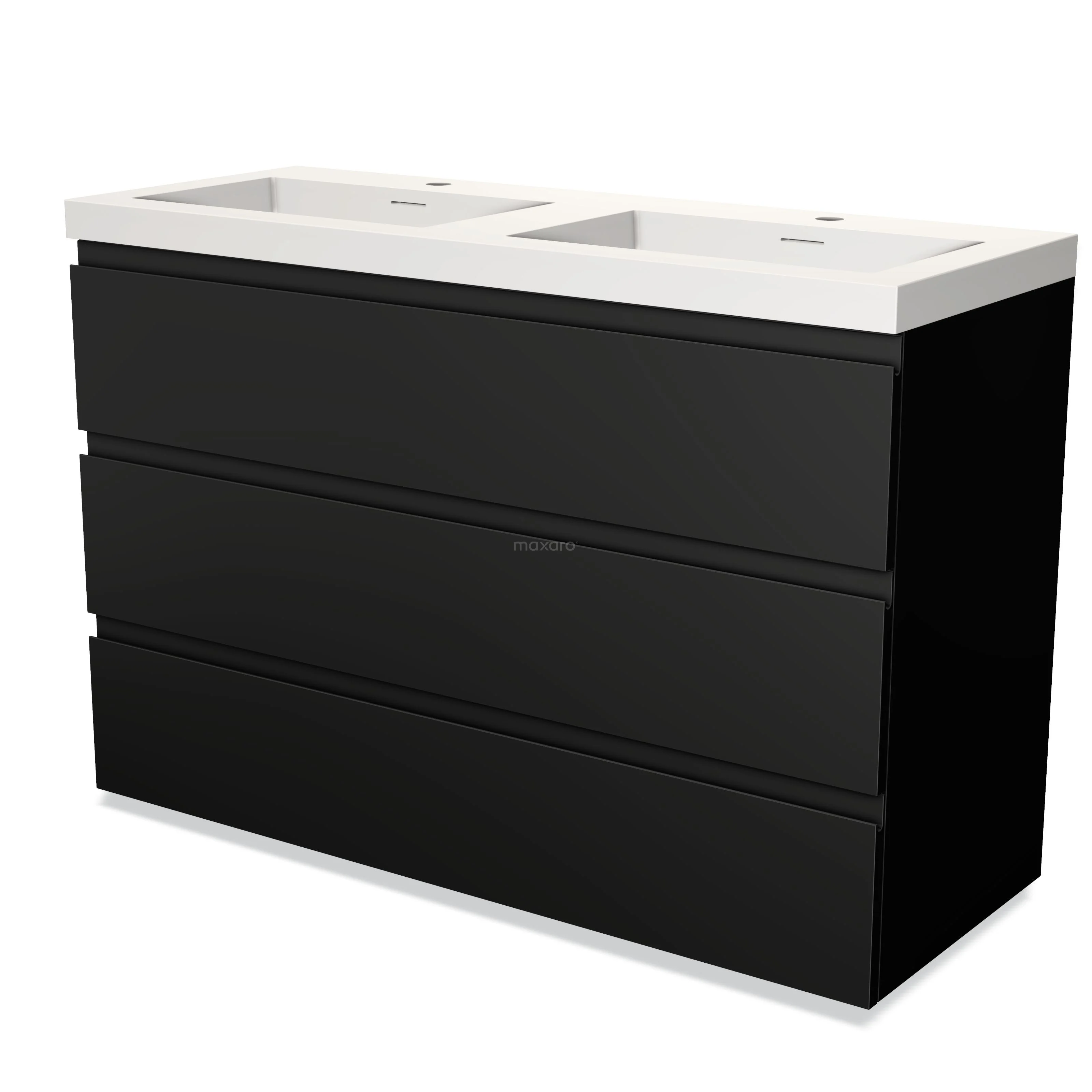 Modulo Bathroom furniture with sink | 120 cm Matte black Handle-less front Solid surface 3 drawers