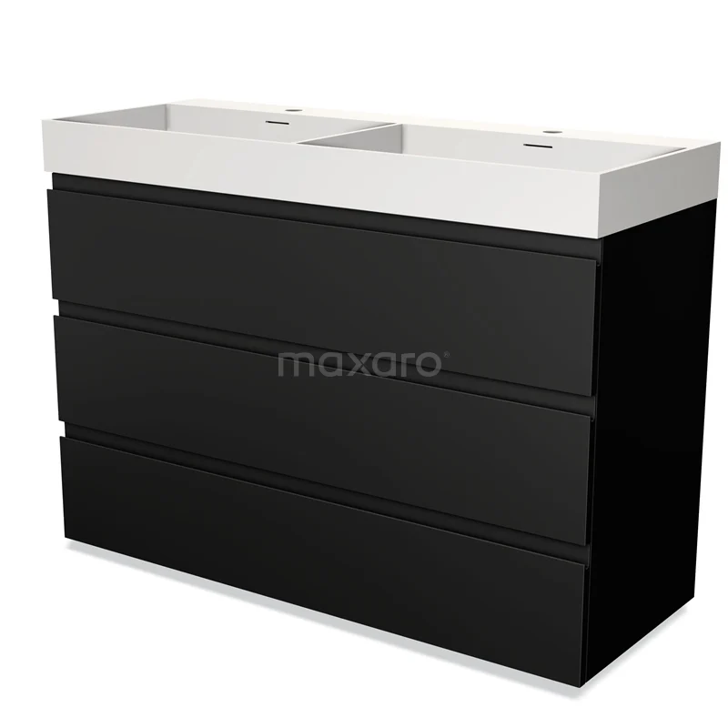 Modulo Bathroom furniture with sink | 120 cm Matte black Handle-less front Solid surface 3 drawers