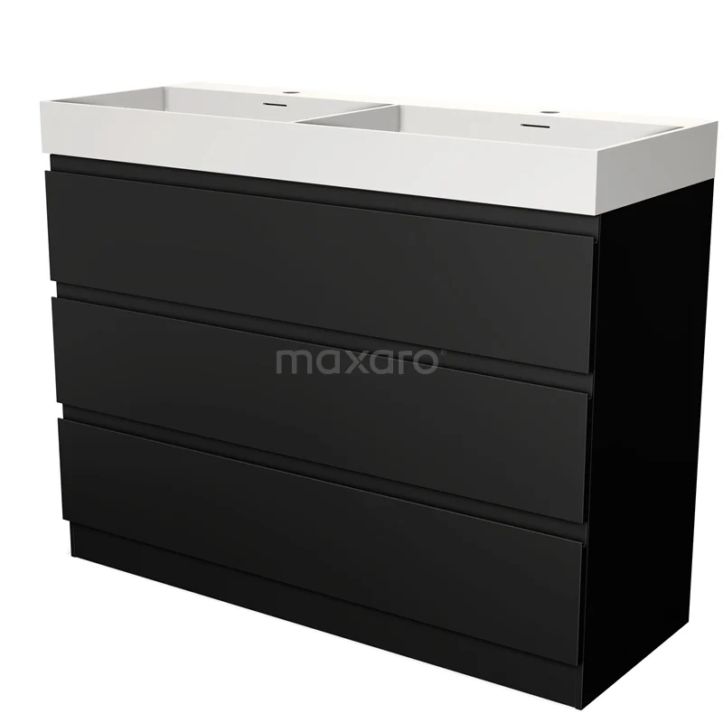 Modulo Bathroom furniture with sink | 120 cm Matte black Handle-less front Solid surface 3 standing drawers