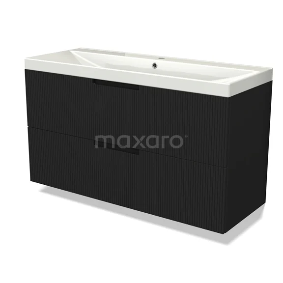 Modulo Bathroom furniture with sink | 120 cm Matte black Line front Ceramic 2 Stacked drawers