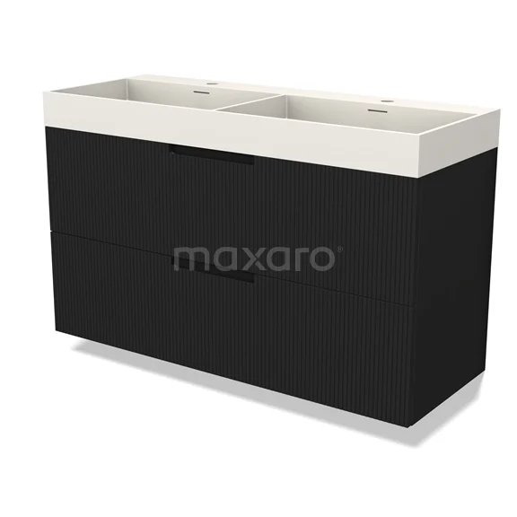 Modulo Bathroom furniture with sink | 120 cm Matte black Line front Solid surface 2 Stacked drawers