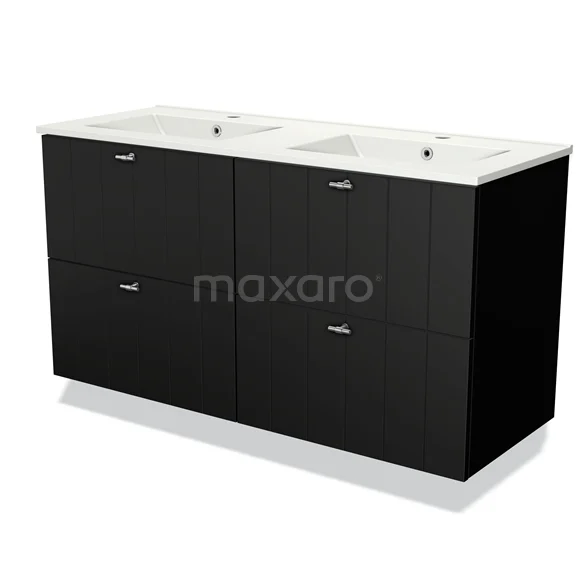 Modulo Bathroom furniture with sink | 120 cm Matte black Slat front Ceramic 4 drawers