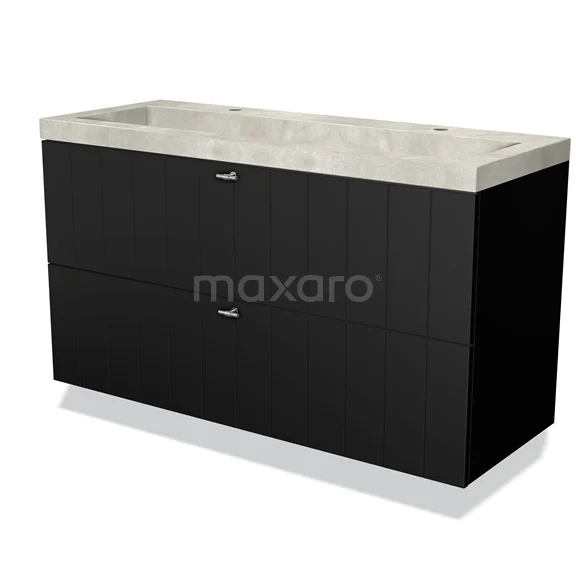 Modulo Bathroom furniture with sink | 120 cm Matte black Slat front Concrete 2 Stacked drawers