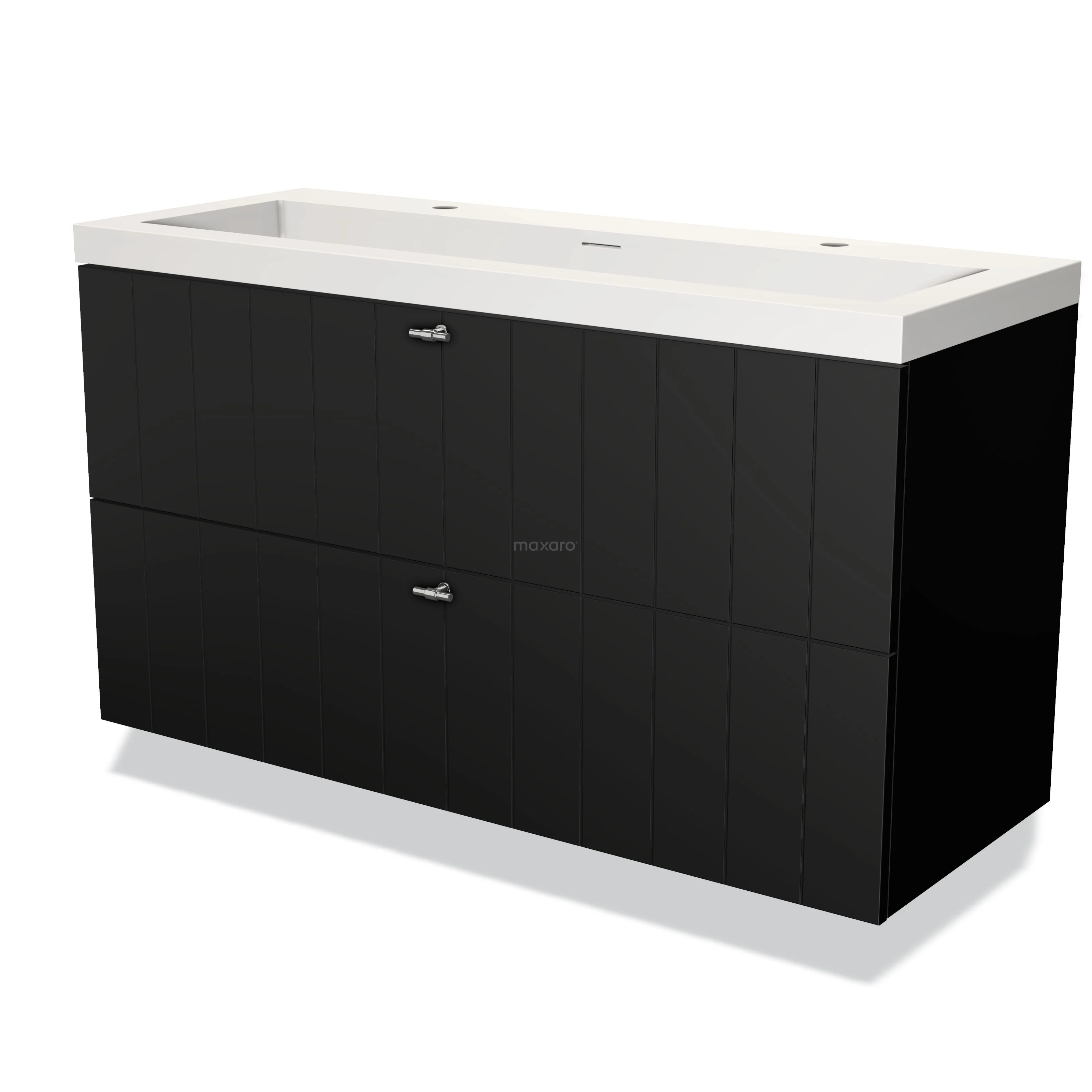 Modulo Bathroom furniture with sink | 120 cm Matte black Slat front Solid surface 2 Stacked drawers