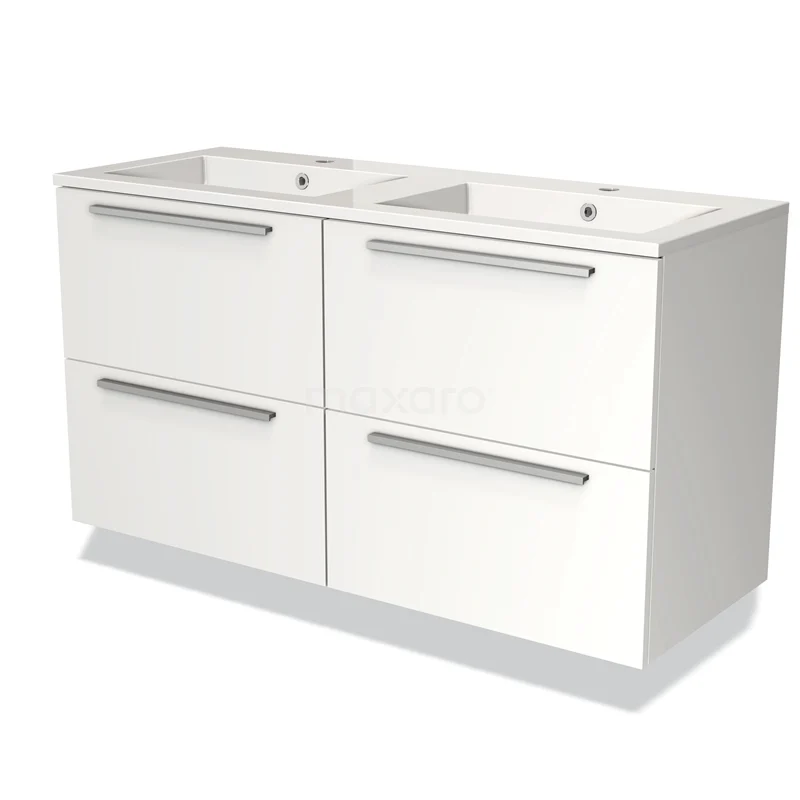 Modulo Bathroom furniture with sink | 120 cm Matte white Flat front Mineral marble 4 drawers