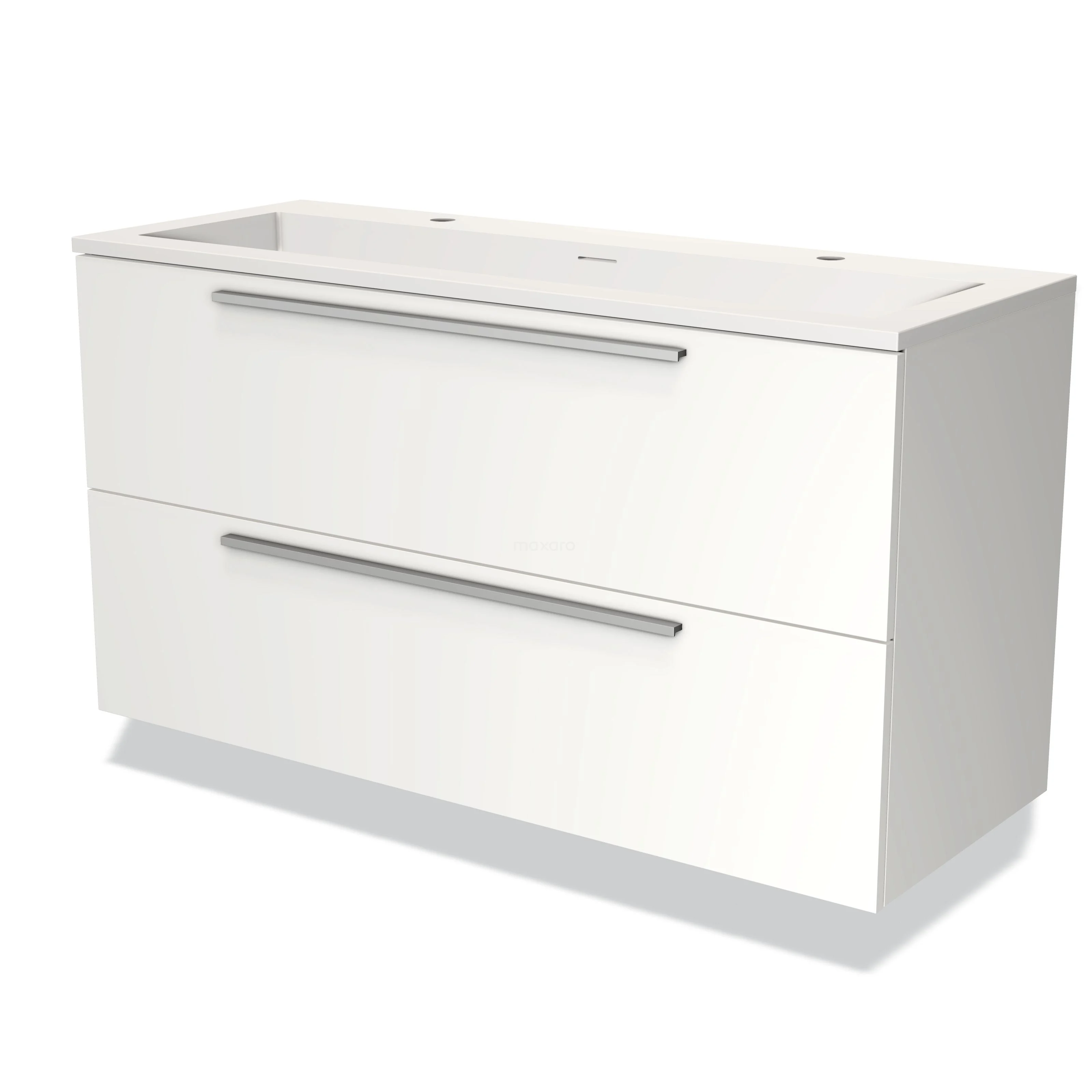 Modulo Bathroom furniture with sink | 120 cm Matte white Flat front Solid surface 2 Stacked drawers