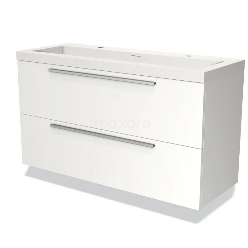 Modulo Bathroom furniture with sink | 120 cm Matte white Flat front Solid surface 2 Stacked drawers