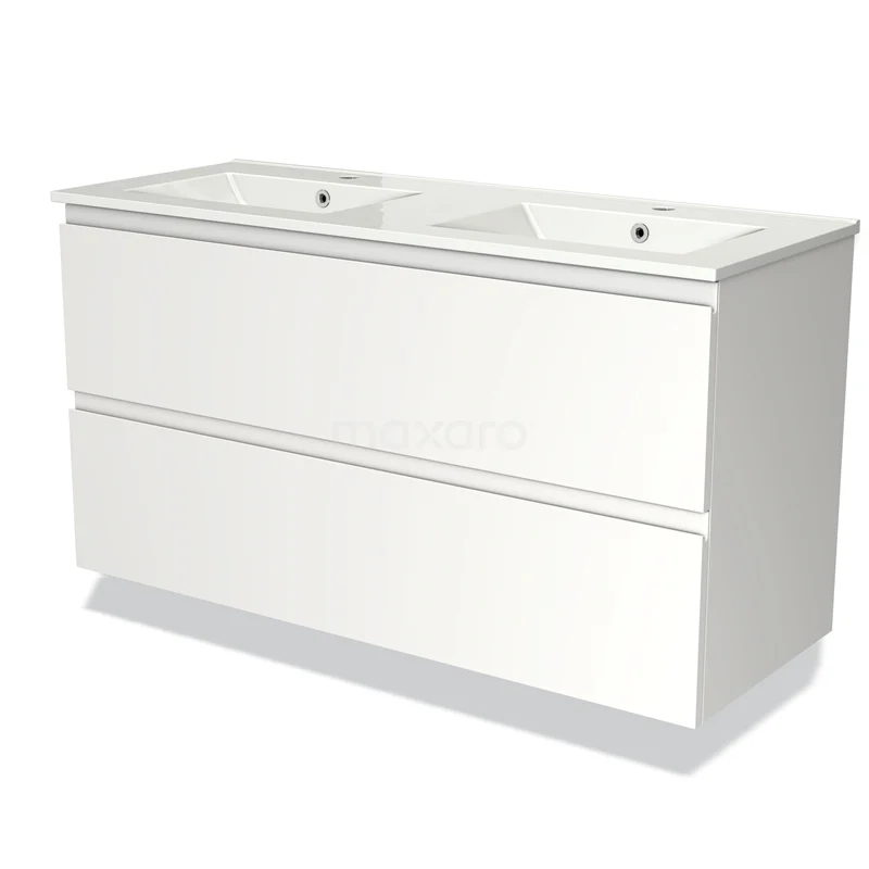 Modulo Bathroom furniture with sink | 120 cm Matte white Handle-less front Ceramic 2 Stacked drawers
