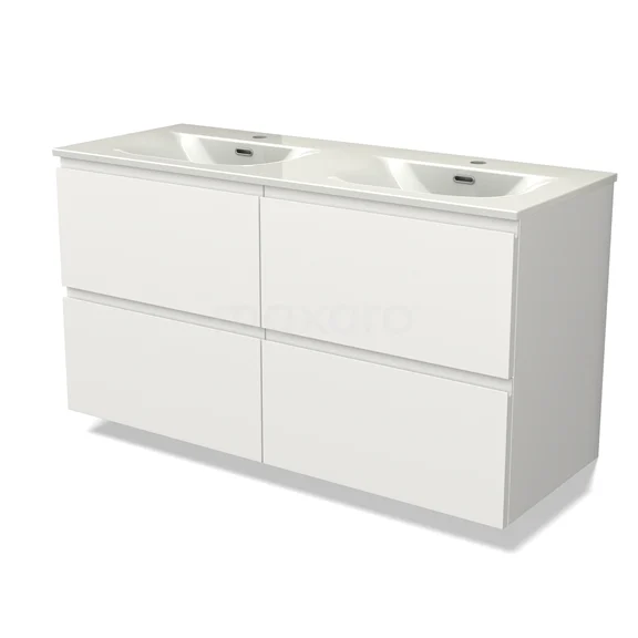 Modulo Bathroom furniture with sink | 120 cm Matte white Handle-less front Ceramic 4 drawers