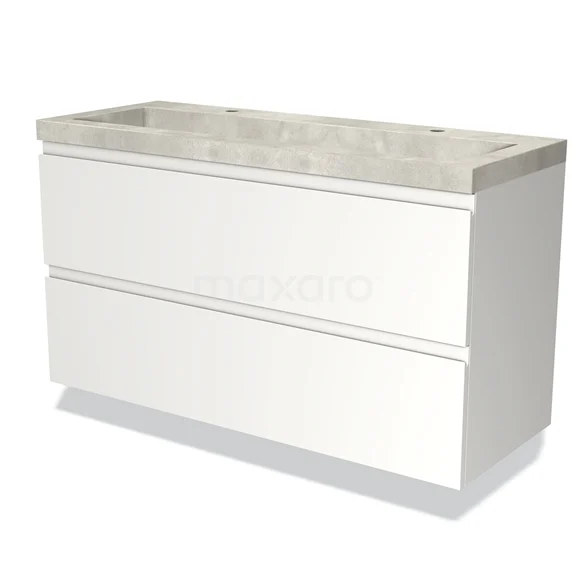 Modulo Bathroom furniture with sink | 120 cm Matte white Handle-less front Concrete 2 Stacked drawers