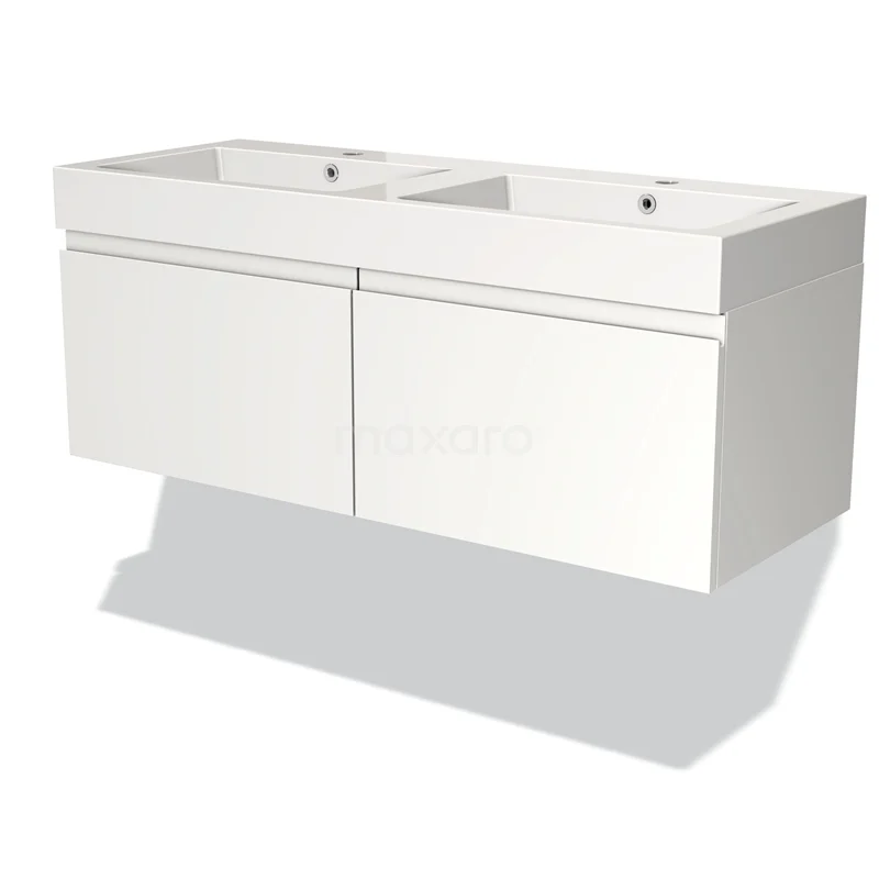 Modulo Bathroom furniture with sink | 120 cm Matte white Handle-less front Mineral marble 2 Side-by-side drawers