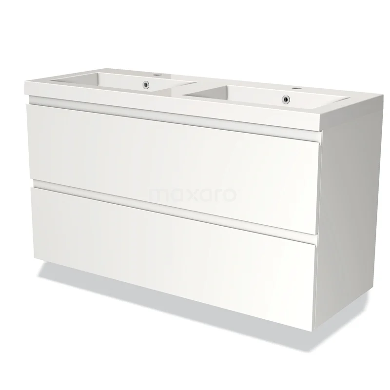 Modulo Bathroom furniture with sink | 120 cm Matte white Handle-less front Mineral marble 2 Stacked drawers