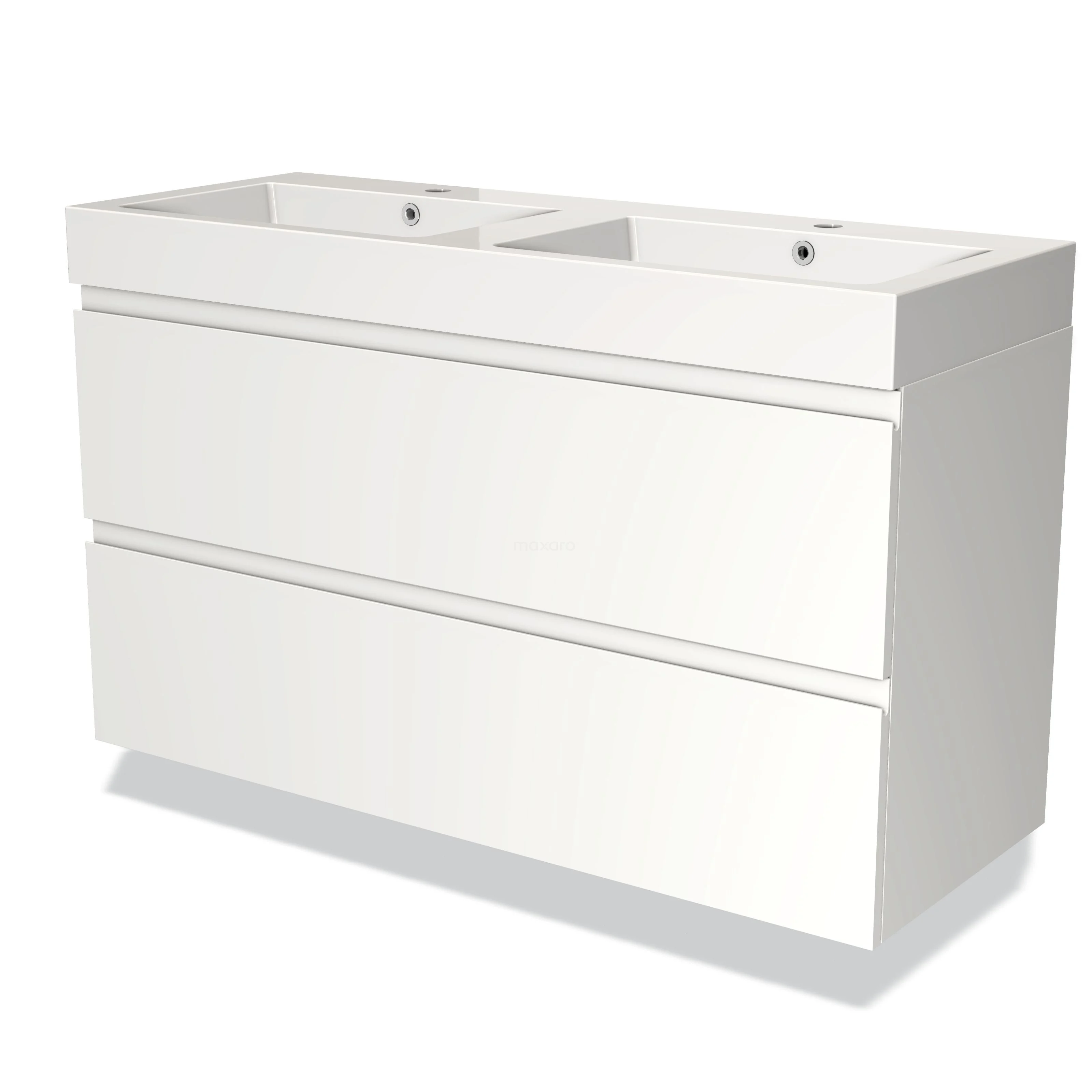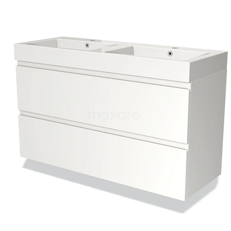 Modulo Bathroom furniture with sink | 120 cm Matte white Handle-less front Mineral marble 2 Stacked drawers
