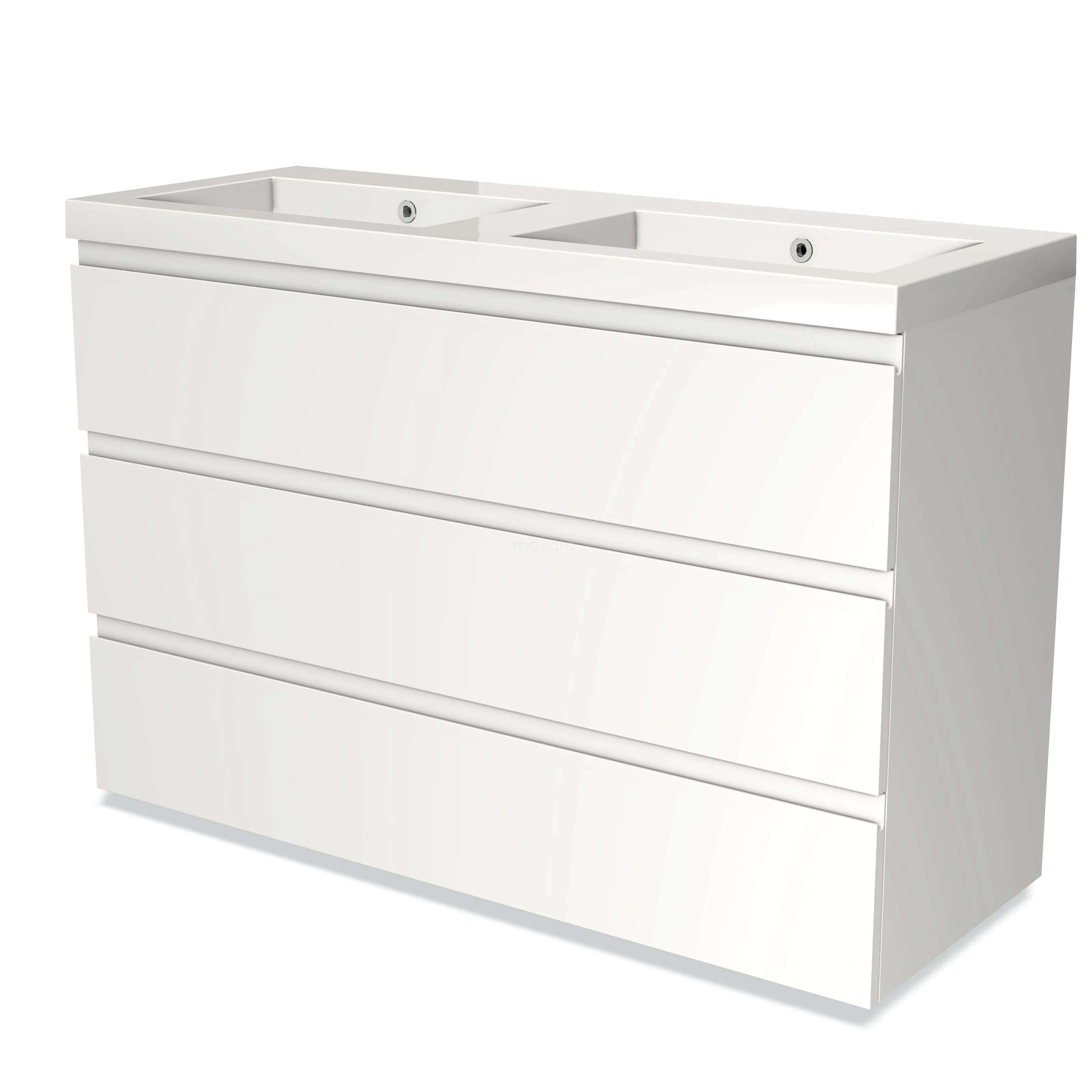 Modulo Bathroom furniture with sink | 120 cm Matte white Handle-less front Mineral marble 3 drawers