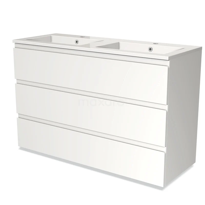 Modulo Bathroom furniture with sink | 120 cm Matte white Handle-less front Mineral marble 3 drawers
