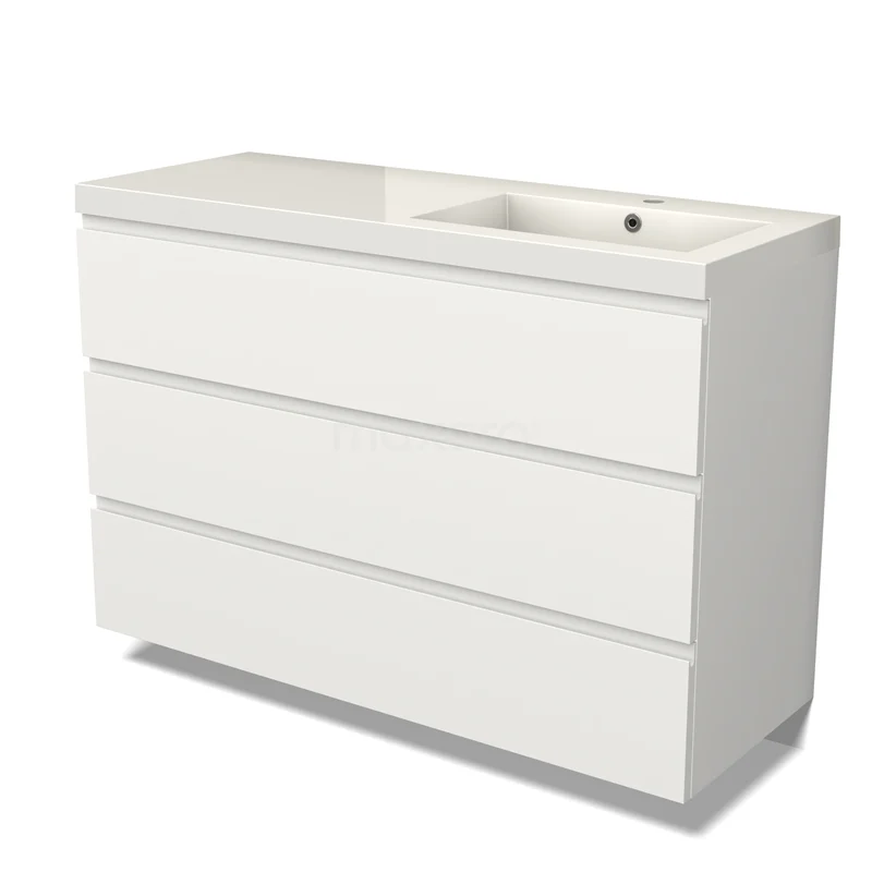 Modulo Bathroom furniture with sink | 120 cm Matte white Handle-less front Mineral marble 3 drawers