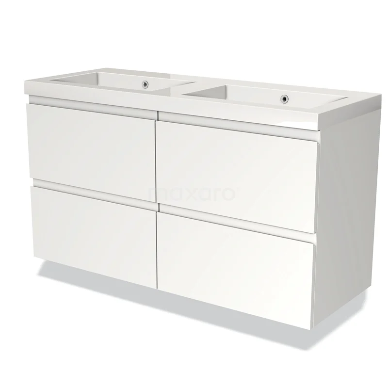 Modulo Bathroom furniture with sink | 120 cm Matte white Handle-less front Mineral marble 4 drawers