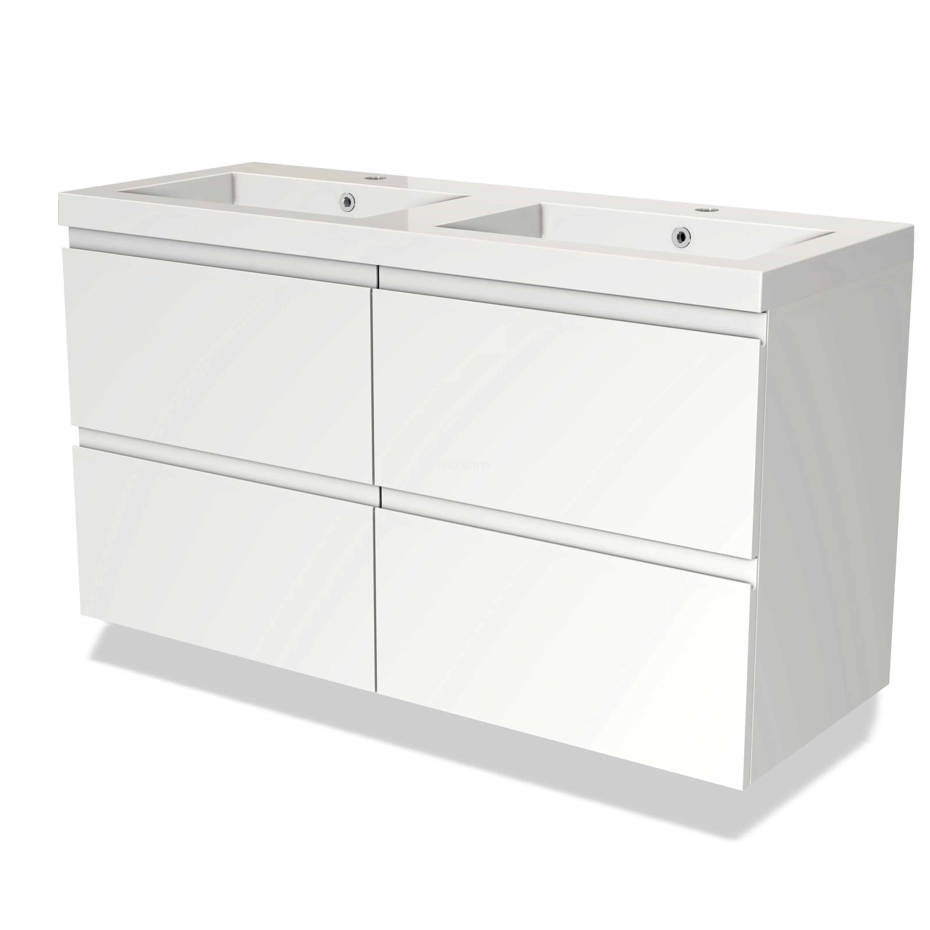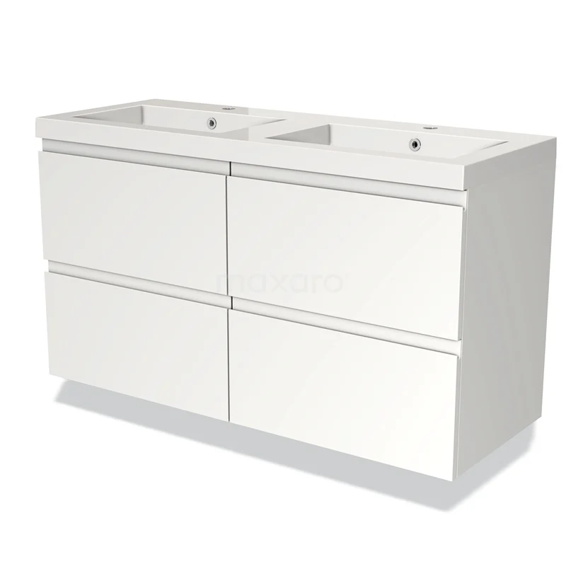 Modulo Bathroom furniture with sink | 120 cm Matte white Handle-less front Mineral marble 4 drawers