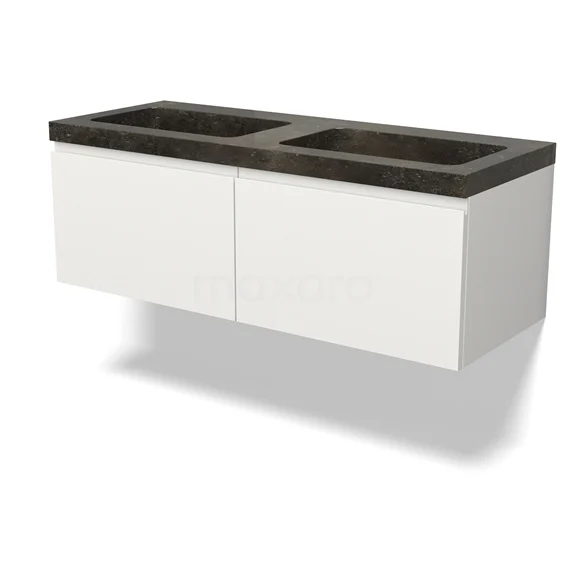 Modulo Bathroom furniture with sink | 120 cm Matte white Handle-less front Natural stone 2 Side-by-side drawers